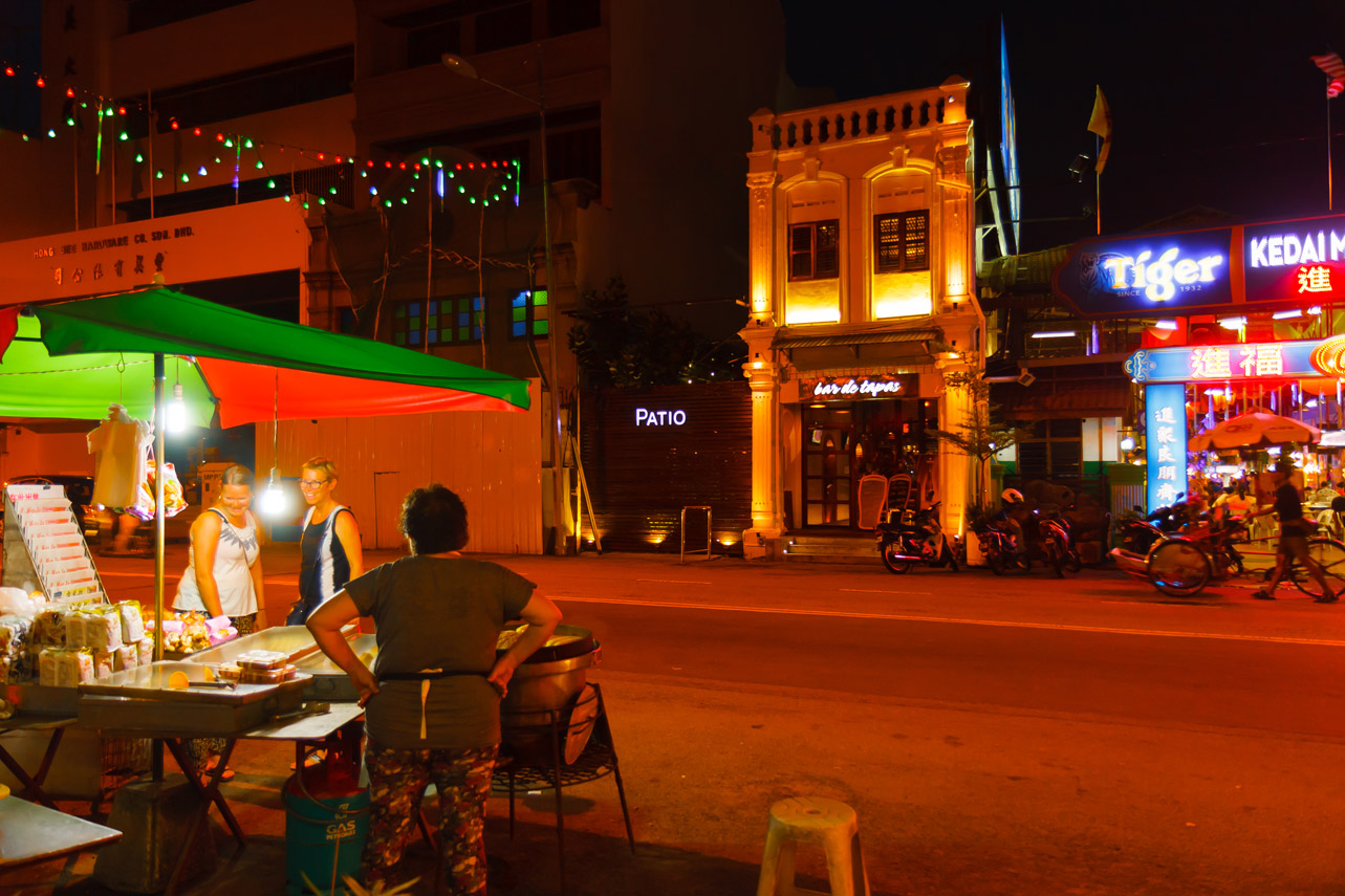 Georgetown-Chinatown im Hintergrund ein riesiger Food Court mit asiatische Spezialitäten